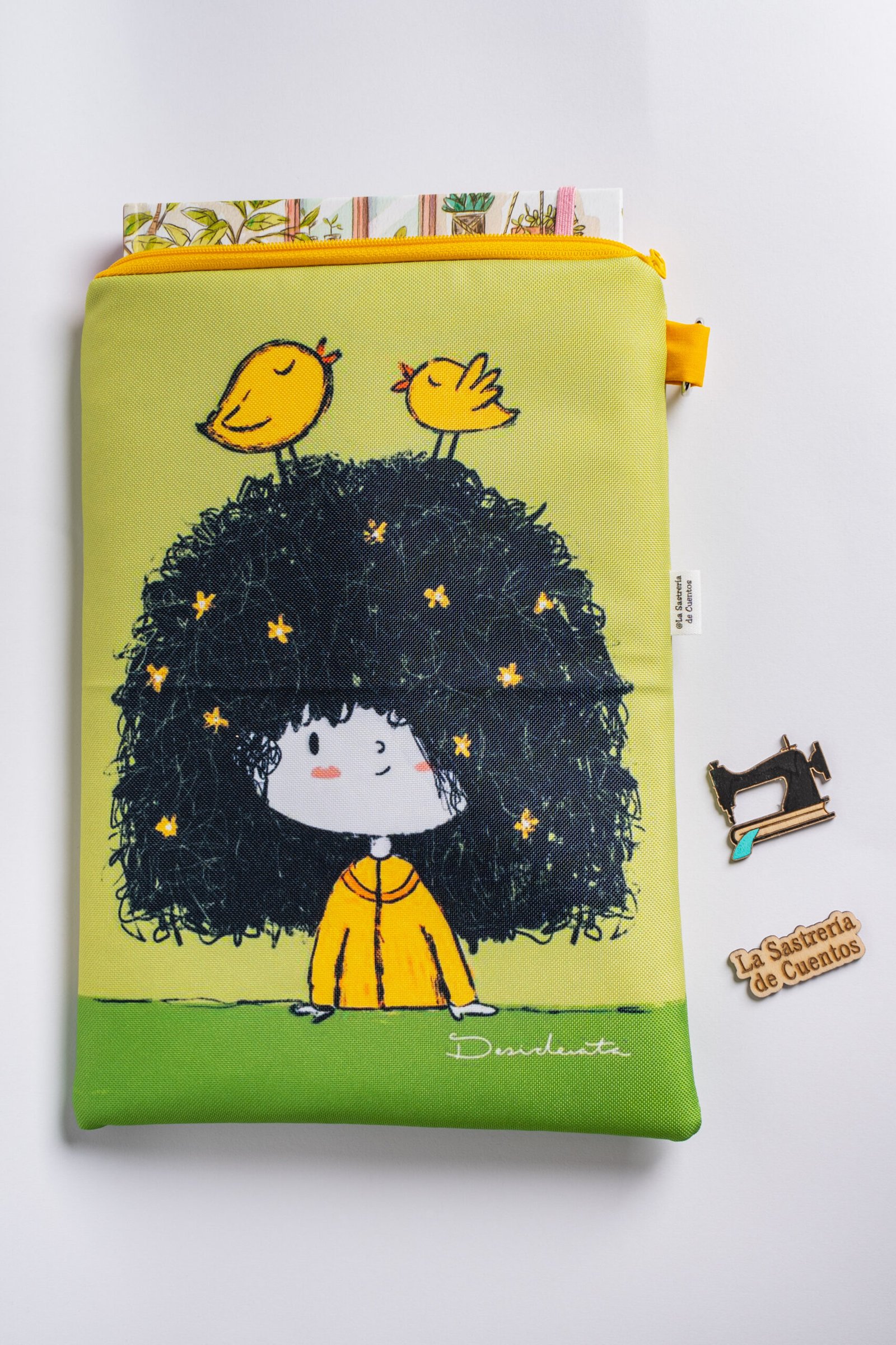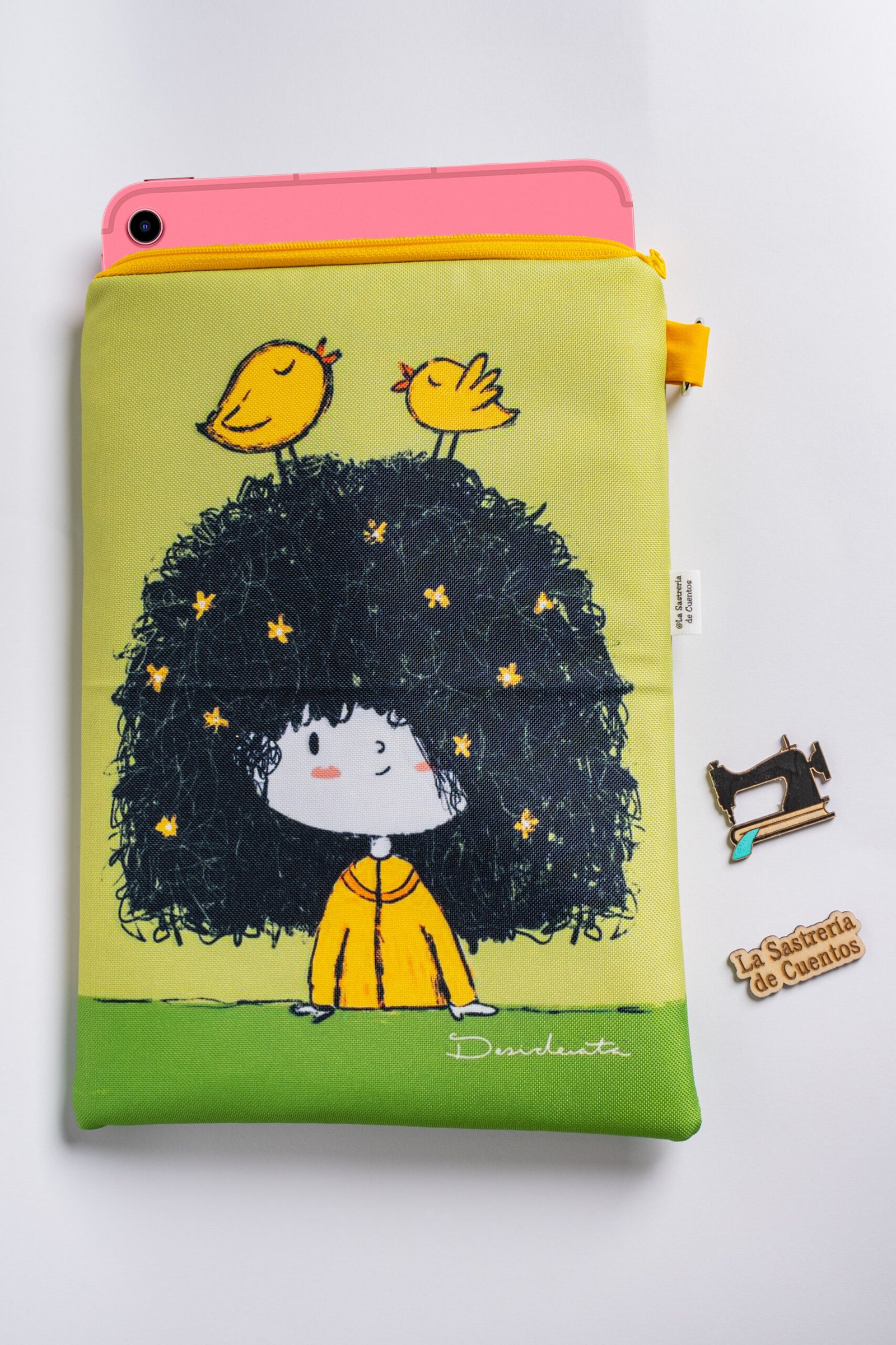 Artesania y diseño se unen para ofrecerte un producto único, especial, una funda con el diseño de la ilustradora Desiree Arancibia confeccionada con un tejido impermeable de tacto suave que permite llevarla a cualquier parte incluido playa o piscina, protegiendo tu libro o tablet de cualquier adversidad climática y suciedad.