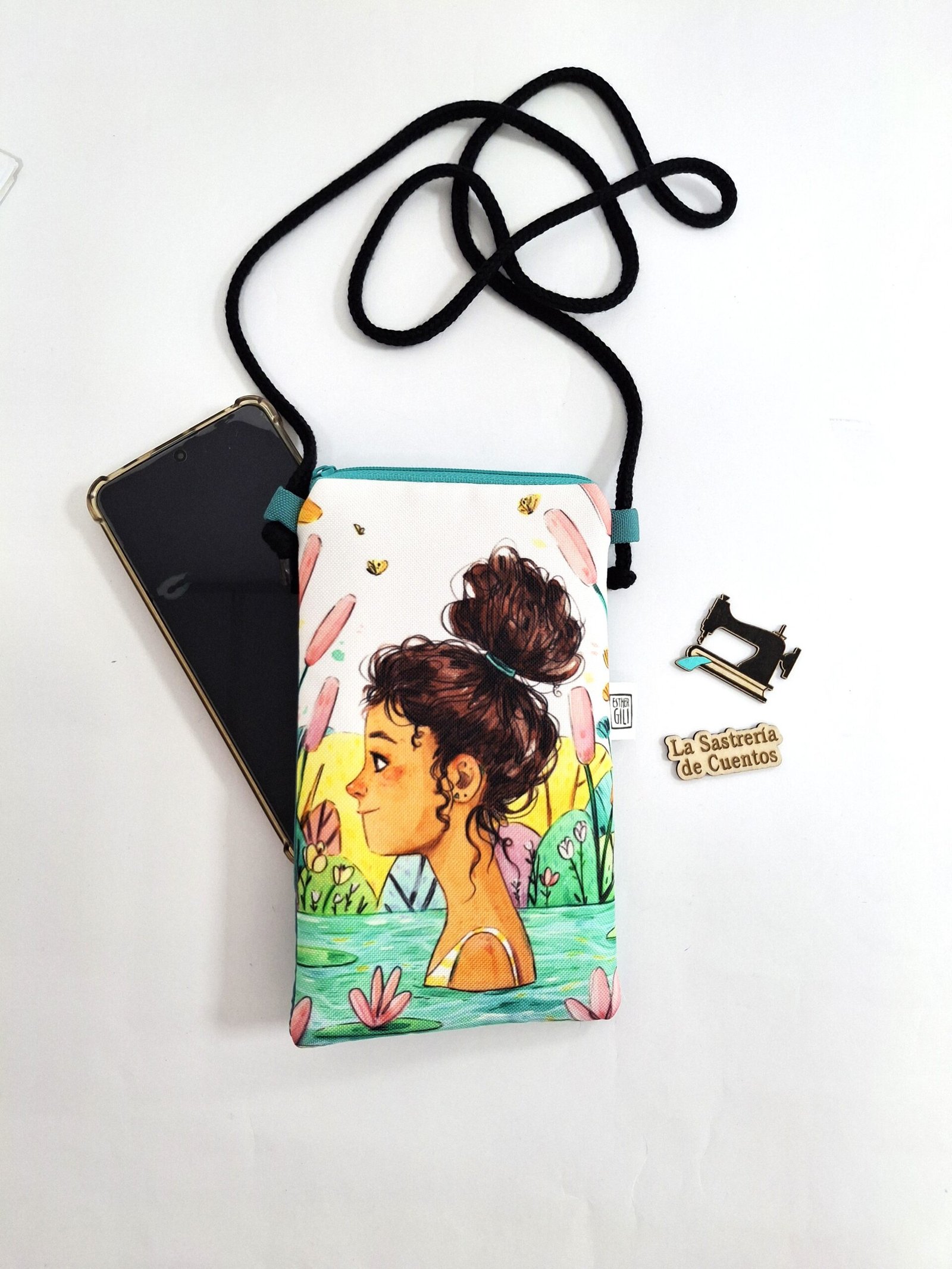Diseño y funcionalidad, esta cómoda funda acolchada con la ilustración de Esther Gili está diseñada para que lleves tu móvil siempre contigo, con cuerda ajustable a la medida que necesites.