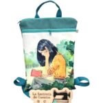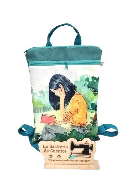 Mochila con la ilustración de Esther Gili combinada en azul marino