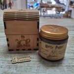 Una velita hecha artesanalmente con cera de soja natural 100 %. La etiqueta está diseñada en nuestro Taller.